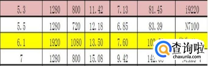 5英寸到7英寸的机型代表为N7100,华为Mate Nexus7等