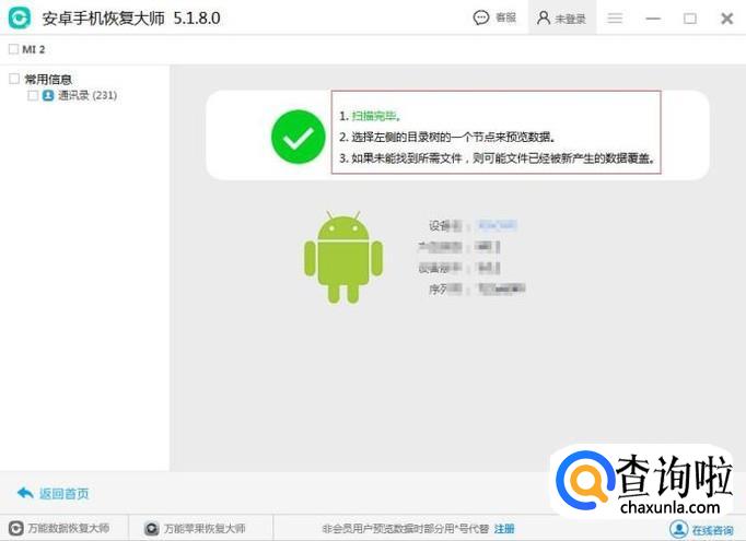 这时候在扫描手机上的数据,耐心等待,扫描之后会提示扫描完成。