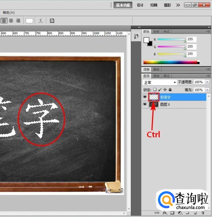 找到黑板素材,用PS打开,作为图层0;