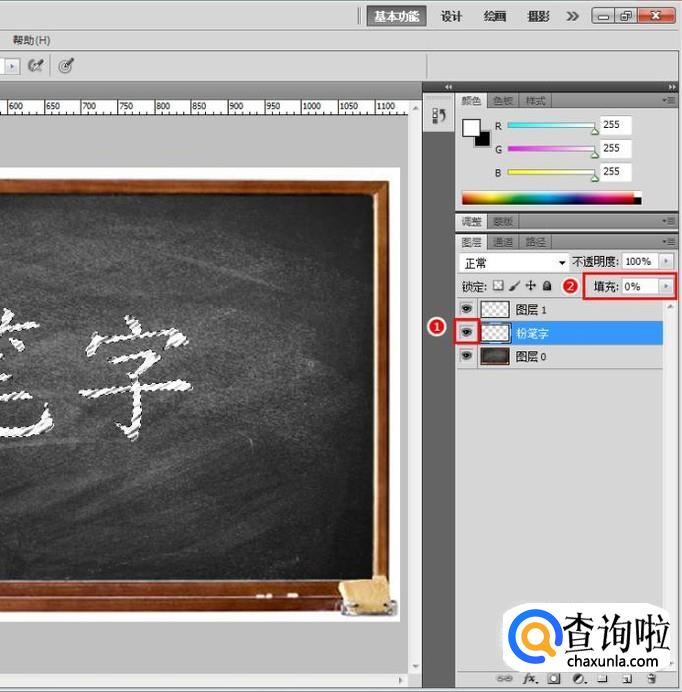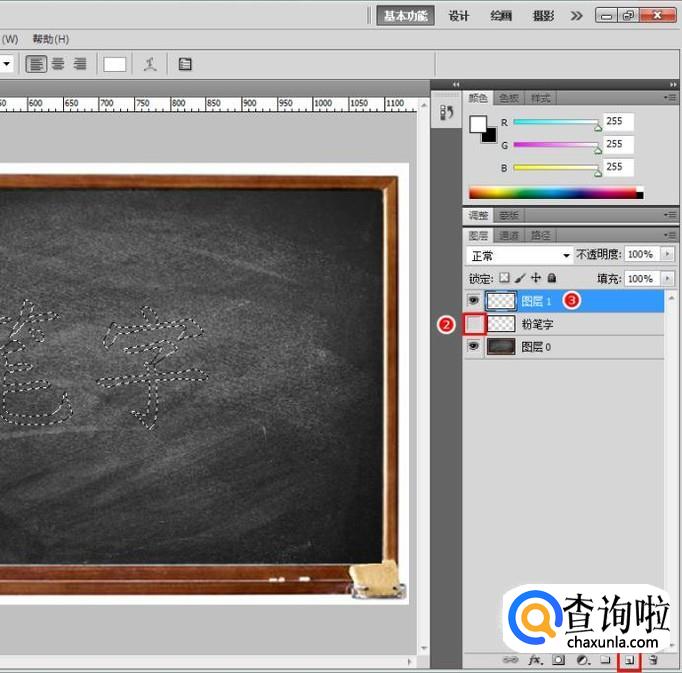 新建图层,隐藏文字图层,准备绘制粉笔字;