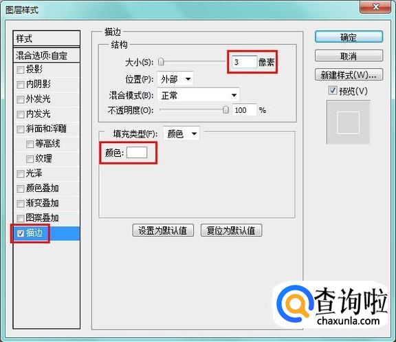 使用描边工具,设置3像素,颜色为白色,做一个文字轮廓出来;