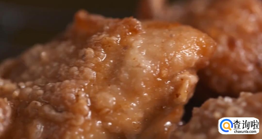 腌制过的鸡腿儿肉,裹上小麦粉和土豆淀粉的混合物(比例为1:1)。