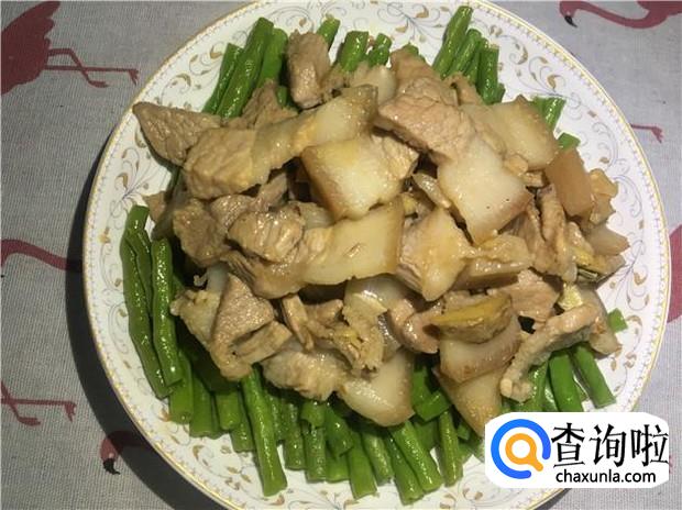 即可装盆,一碟美味的豌豆角炒五花肉就做好了。