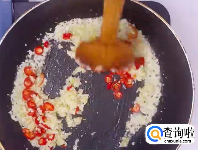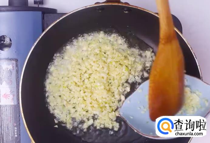 之后锅中烧热油,加入蒜末。如图所示。