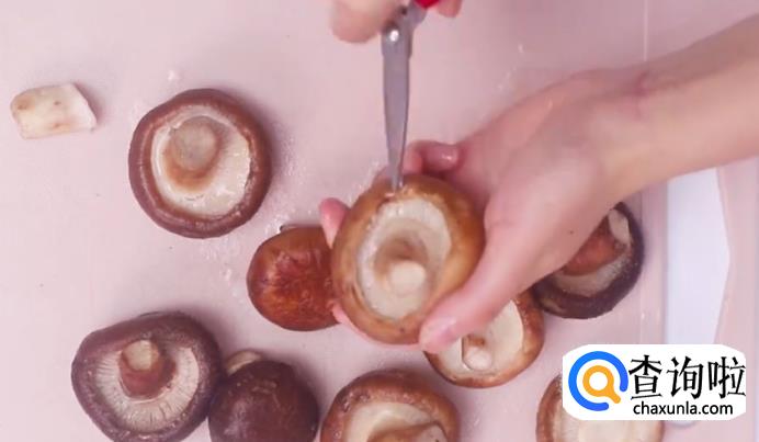 接着把香菇洗干净,把香菇的蒂去除。如图所示。