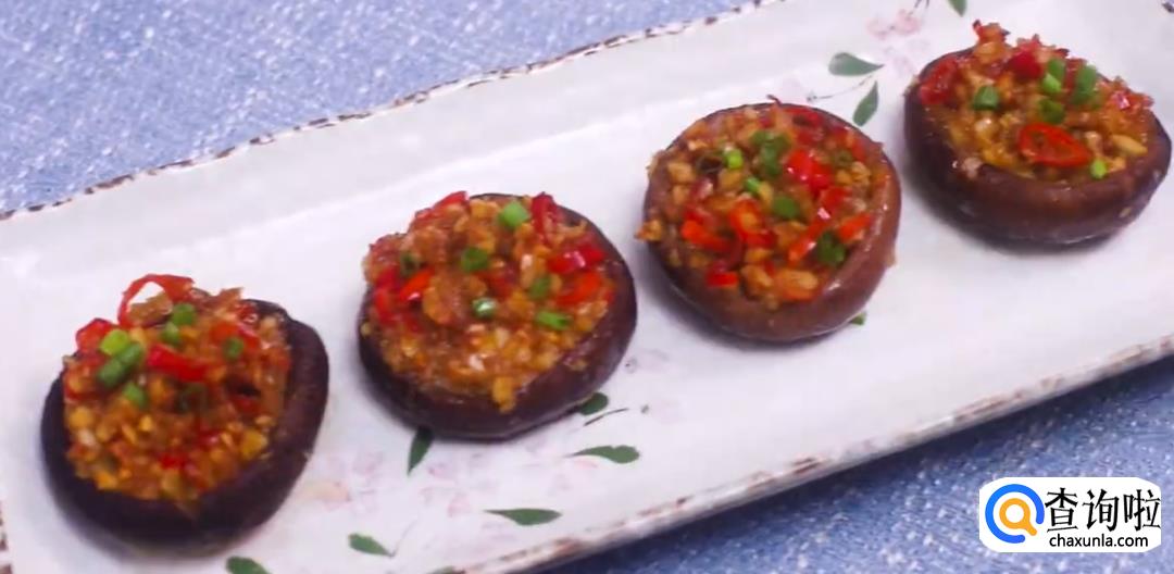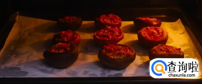 接着在香菇里塞满蒜蓉。如图所示。