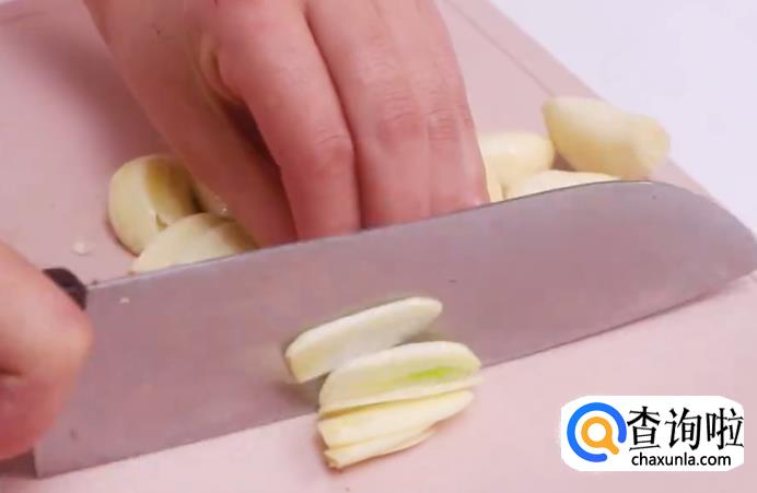 首先将蒜切成末。如图所示。