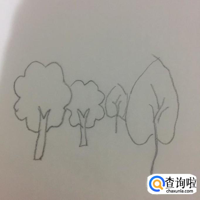 然后在这棵树旁画出两棵小树,如下图所示。我们在画这一步的时候,需要注意的是画的树要越来越小会比较好。