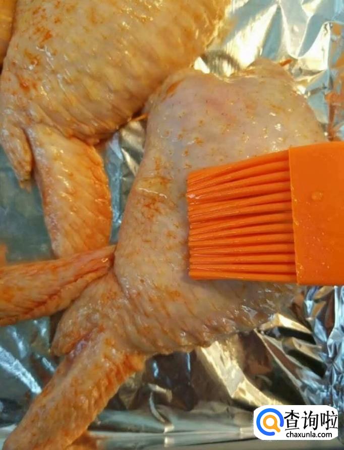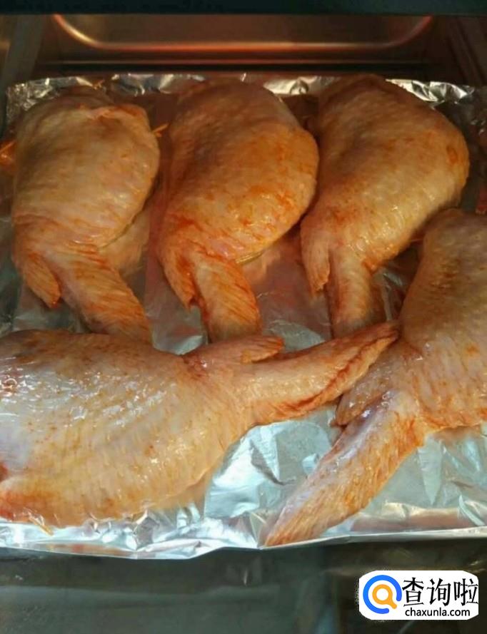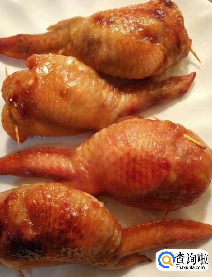 然后我们把烤箱预热5分钟,把鸡翅包饭放入烤箱,上下火180度烤10分钟,取出刷一层蜂蜜,再烤5分钟