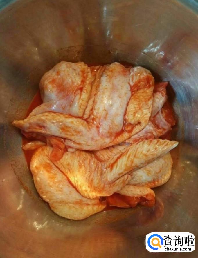 把鸡翅剔除骨头,清洗干净,放入一个盆中