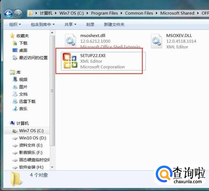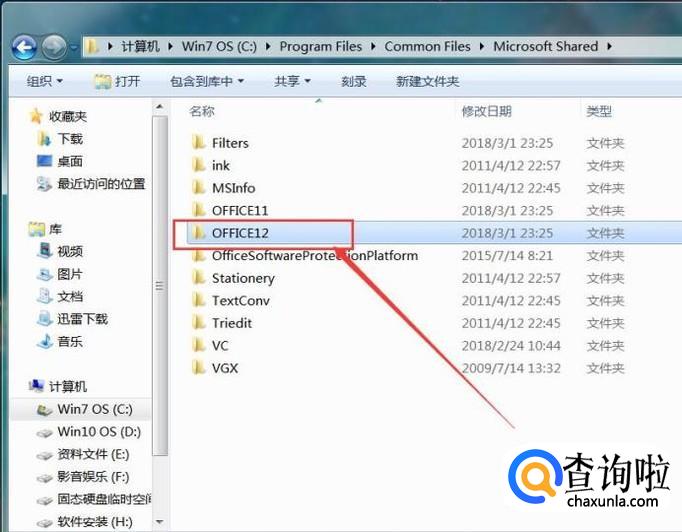 接下来,在Microsoft Shared文件夹中找到命名为OFFICE12的文件夹。