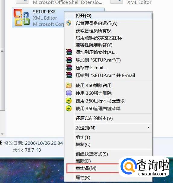 最后,我们随便将该文件的名称命名为如“SETUP22.exe”等都可以,这样下次运行Office软件的时候,软件将不再调用该程序配置Office程序了,我们即可正常的使用该软件。