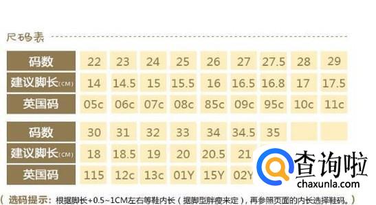 童鞋尺码对照表