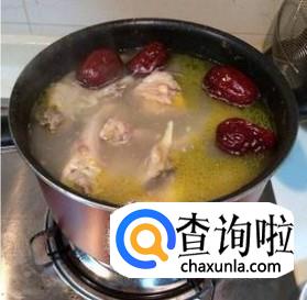 将煎好的鸡肉放入炖锅中,加水,红枣,花胶,花椒,老姜,慢火炖2个小时,起锅。