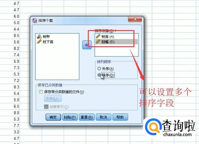 另外我们在设置排序依据的时候还可以添加多个,如下图所示,小编又添加了冠幅字段