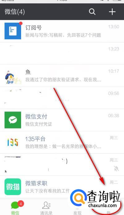 登陆手机上的微信,然后再点击右下角的“我”选项卡。