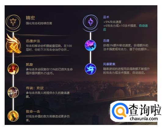 主系:精密系的迅捷步法+凯旋+传说欢欣+致命一击