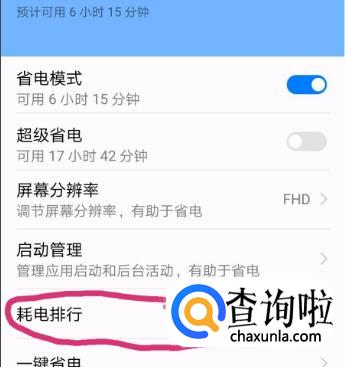 完成以上步骤后,找到“耗电排行”选项,点击打开。