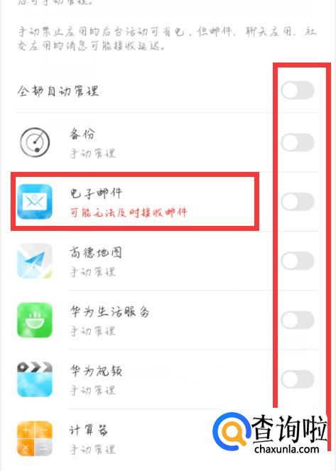 这里可以看到有些应用后面的选项是灰色代表没有选择,这里我们用电子邮件做示范。