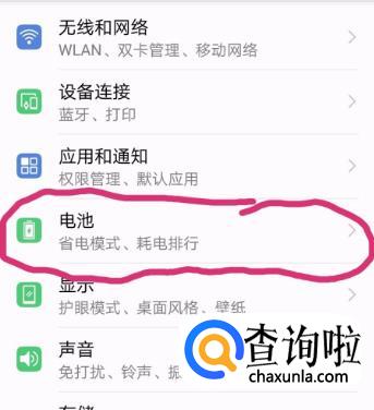 进入设置找到“电池”选项,点击打开。