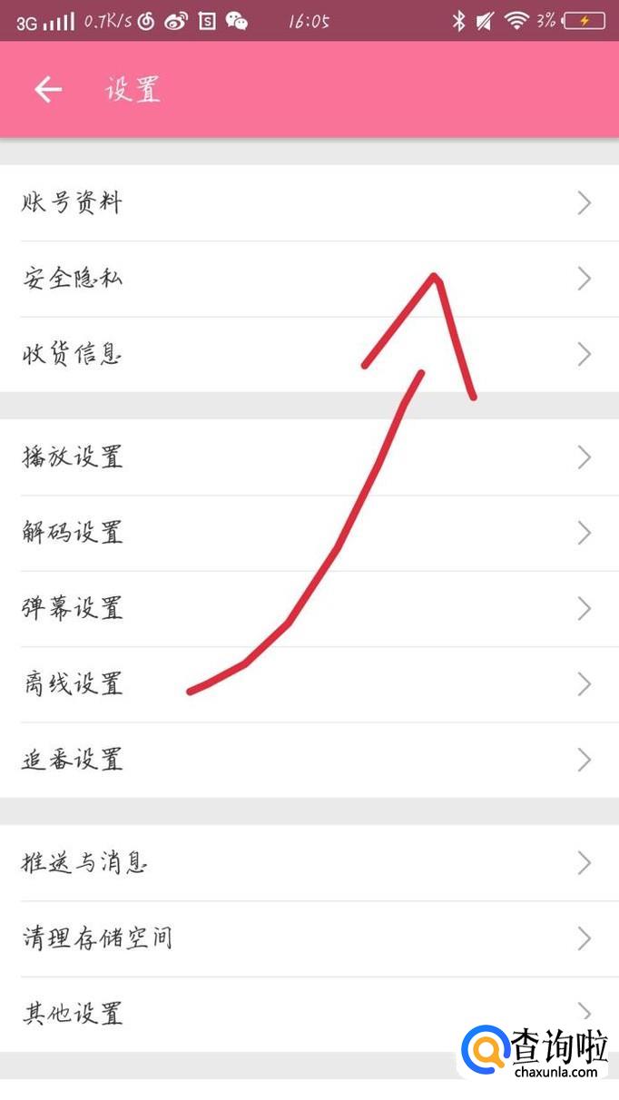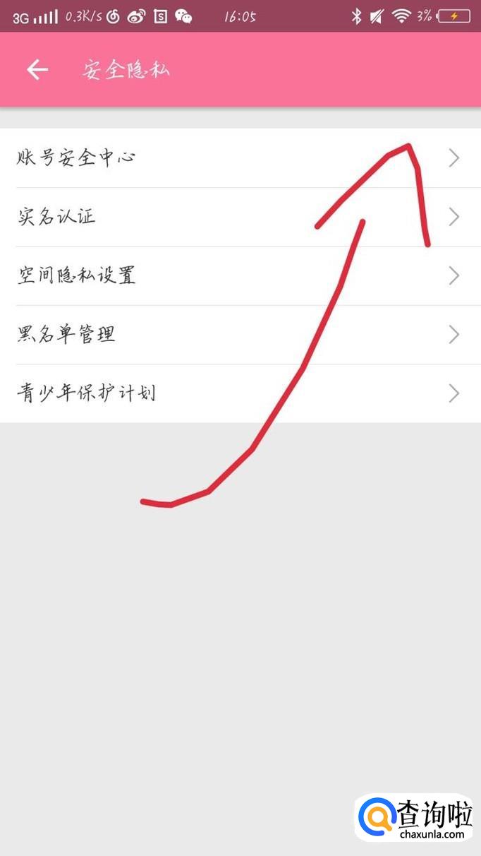 会出现一个新的界面,点击“安全隐私”选项,如图1箭头所示。会出现一个新的界面,点击“账户安全中心选项”如图2箭头所示。