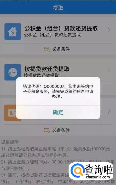 按揭联网提取业务和电子公积金签约业务如果未开通的话登陆市公积金中心官网、天津住房公积金APP或官方微信公众号则会提示需要“签约电子公积金服务”无法进行按揭贷款提取公积金的网上办理。