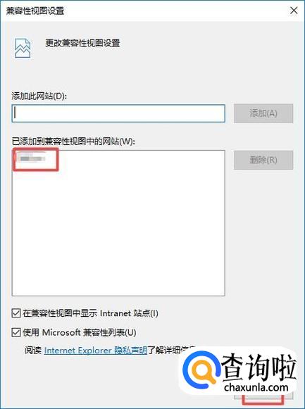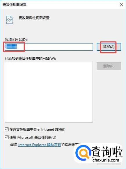 弹出的界面,我们输入我们想要兼容的网站,然后我们点击添加;