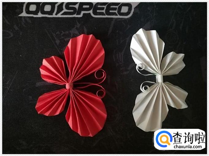 很快,用彩纸折漂亮的扇纹蝴蝶就做好了。
