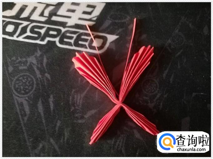 把蝴蝶的触角用锥子头卷一下,向外打卷即可。如图所示。