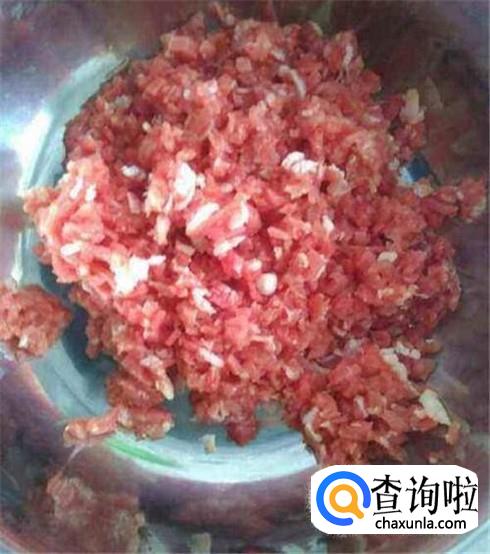 牛肉清洗干净,切成薄片后,再切碎。