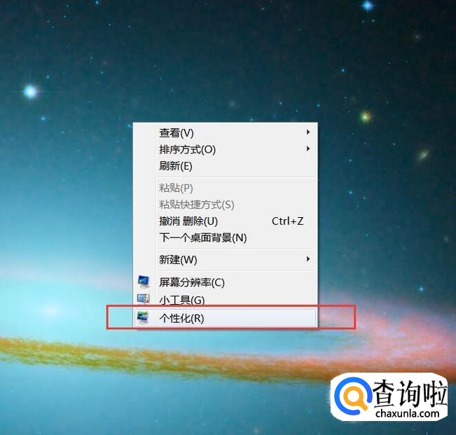 首先,在Win7系统桌面上击右键,选择“个性化”选项。