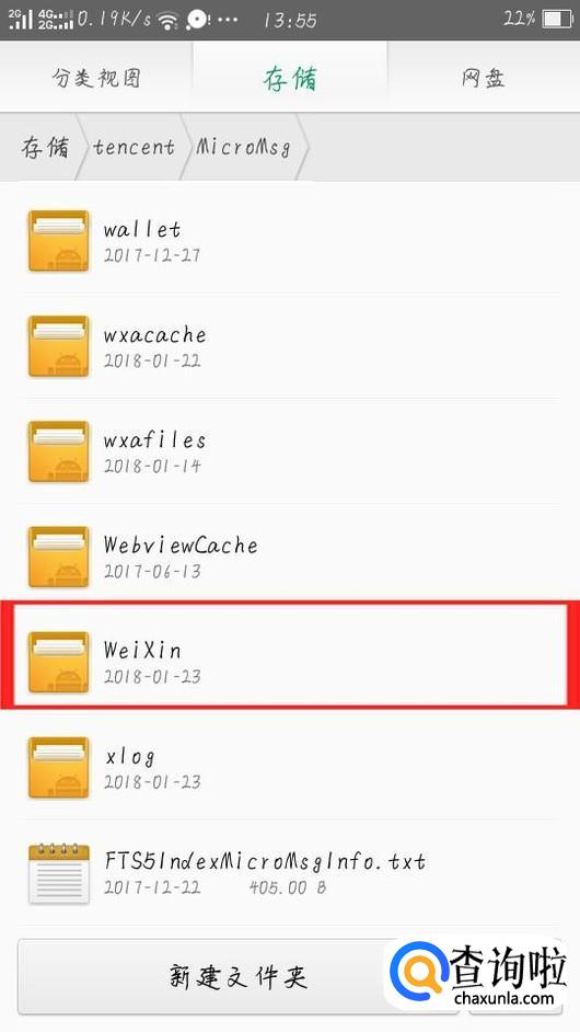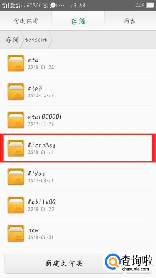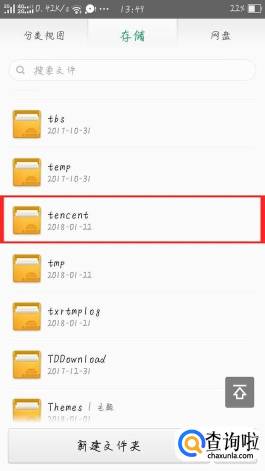 在存储选项卡下找到tencent文件夹并打开