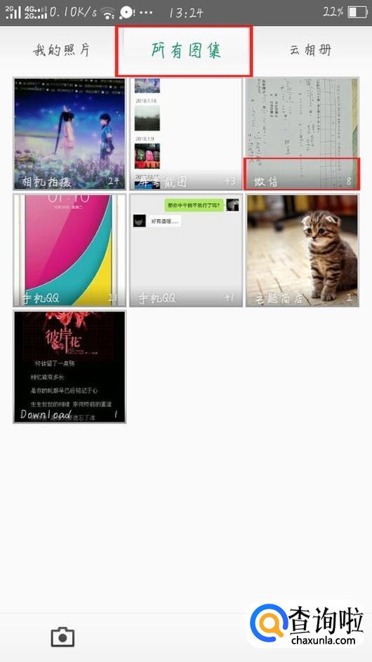 切换到“所有图集”选项卡,找到“微信”,点击进入即可查看微信中保存的图片