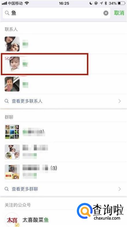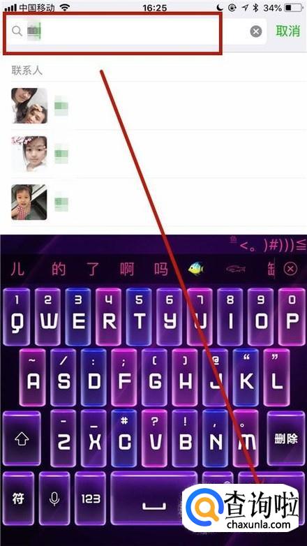 输入可能拉黑我们的好友名称并点击搜索。