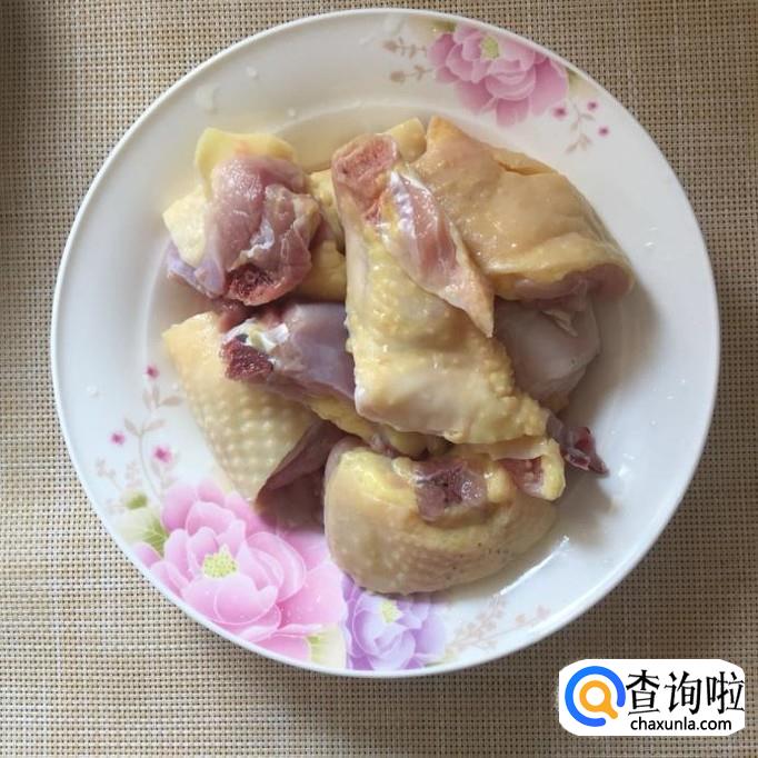 首先将买回来的鸡肉洗干净,然后用刀切成小块,如下图所示。