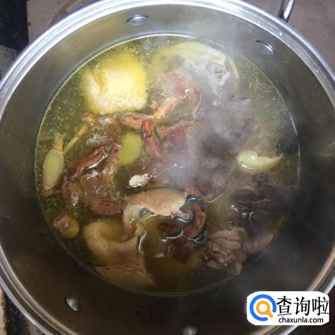 然后把姑梨菇泡半个小时洗净,倒入锅中,开小火煮一个小时。