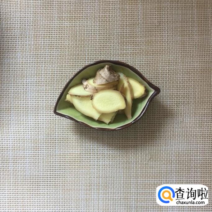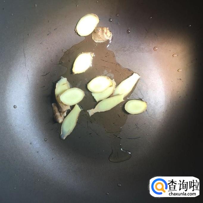接着将生姜切成薄片,锅中放入适量的茶油,等到油冒烟,倒入生姜片爆香。