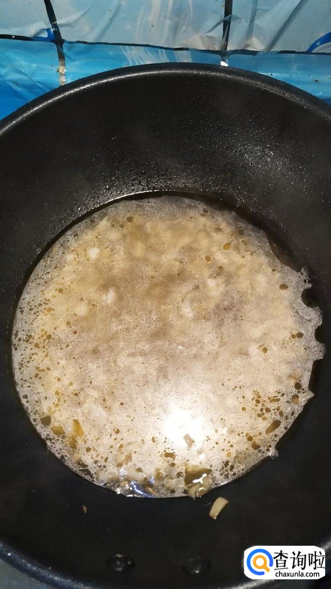 碗中放入少许淀粉,用清水拌一下,做成水淀粉,倒入锅中,熬至汤汁粘稠,然后将鸡蛋清倒入锅中,搅拌均匀。