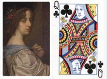 梅花Q :阿金尼(Argine),她的身世已经无从考证,她的名字是由拉丁文的女皇(Regina)一词字母重组而来。影射玫瑰战争结束的王后,亨利七世(来自于兰开斯特王朝)的王后伊丽莎白(约克王朝的公主)。英国兰开斯特王朝以红玫瑰为象征,约克王朝以白玫瑰为象征。两个王室经过玫瑰战争后,终于和解并把双方的蔷薇结合在一起。