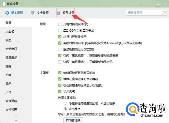 首先,进入设置界面,找到并点击权限设置。如图所示:
