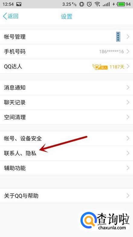 在设置界面中,选择“联系人、隐私”