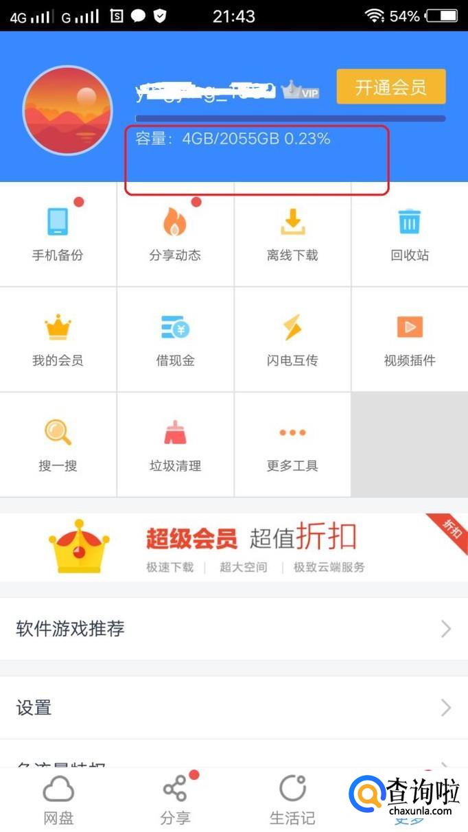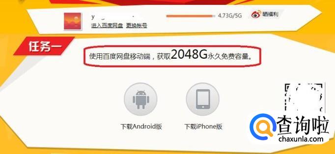 我们可以手机扫二维码下载百度网盘移动端,然后用账号密码登录,之后我们就可以看见自己的网盘容量扩展到2T了,这是永久免费的哦!