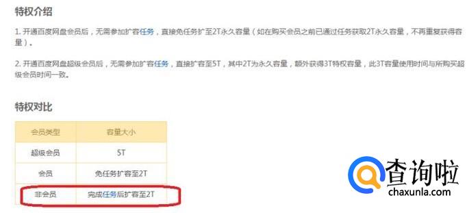 我们看到在该页面中有非会员扩容至2T的办法,点击“任务”按钮,看到只要完成在手机上下载使用百度网盘移动端的任务,就可以永久获得2T永久免费容量了。