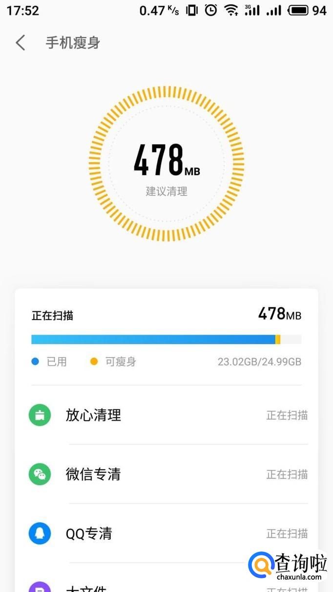 在手机瘦身中,点击也可以进行自动清理以及手动选择清理释放。
