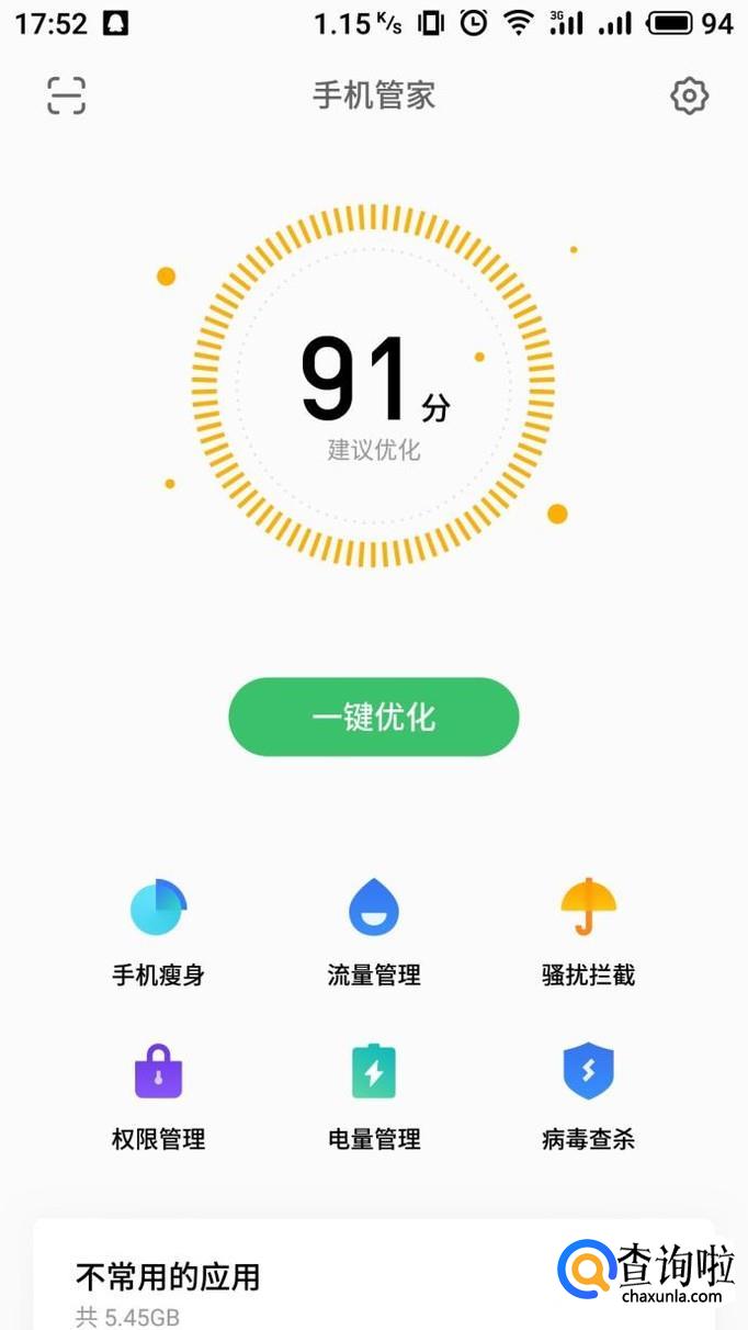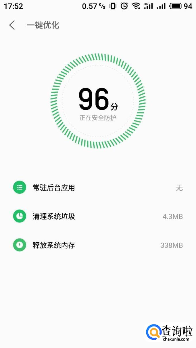 进入一键优化界面,系统自动扫描手机运存垃圾,自动清理。