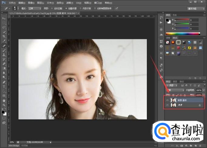 在photoshop中打开需要编辑的照片,并拷贝图层。