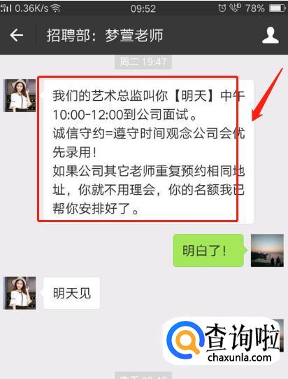 添加面试者微信后,积极联系面试。