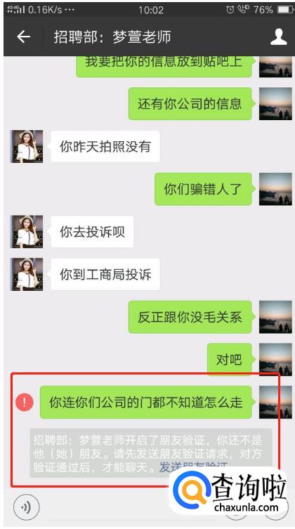 等你再去找她的时候,根本找不到人,她们会直接将你删除,并告诉你,投诉也无所谓。