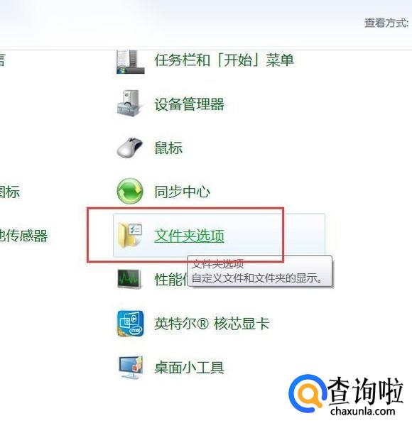 打开控制面板页面之后,选择页面中的“文件夹选项”功能菜单。
