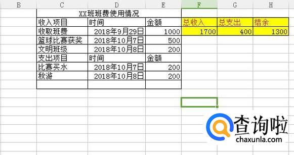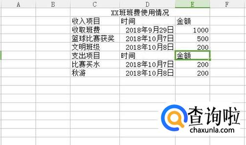 然后输入XX班班费使用情况,如下图所示。